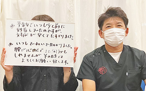 腰が心配で、また伺うかもしれませんが、その時はよろしくお願い致します。